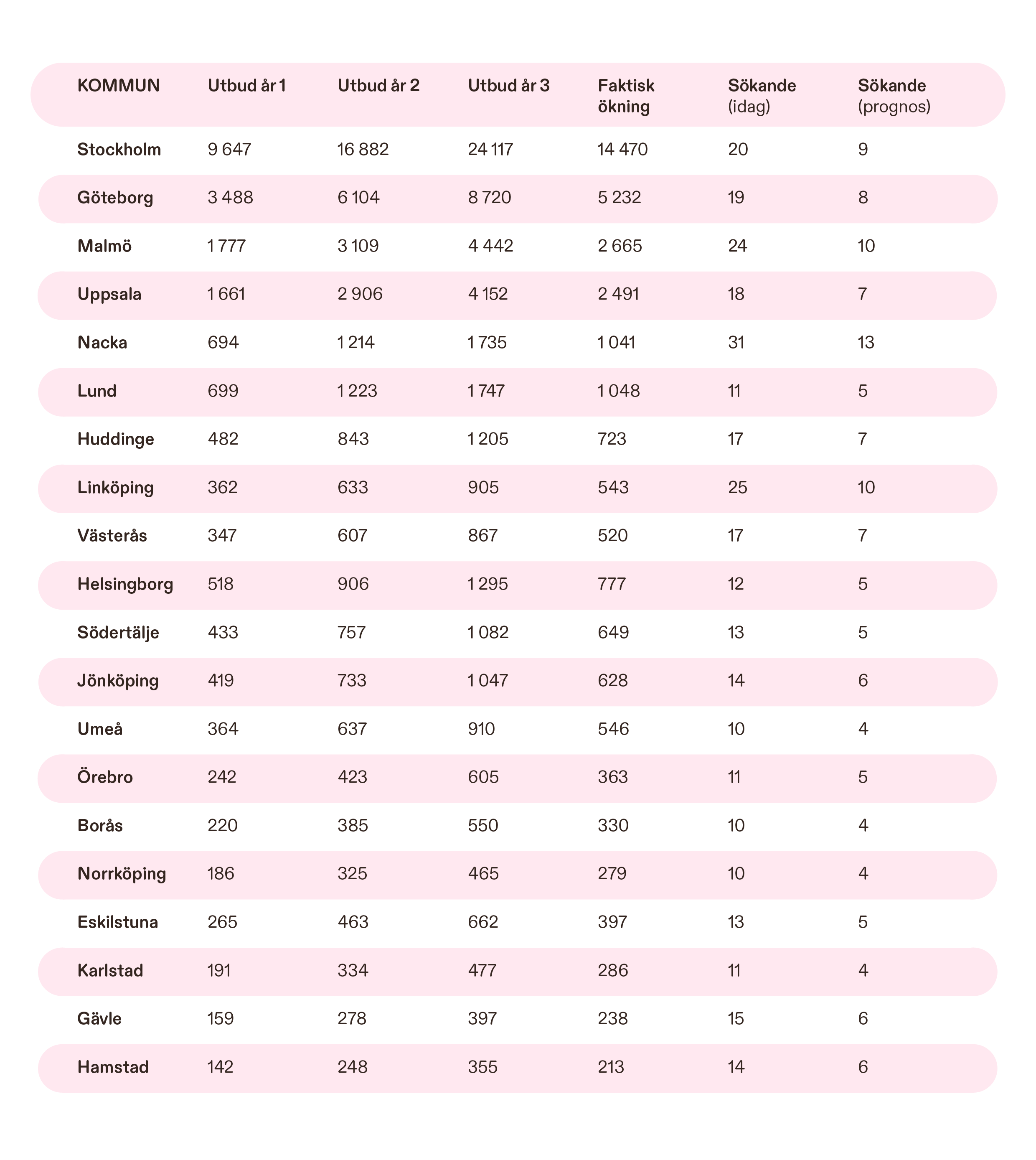 Bara i dessa 20 kommuner skapar vi en ökning på över 36 000 tillgängliga hem över tre år. Ett tillskott som sker helt utan miljöpåverkan från byggprojekt eller statliga subventioner.