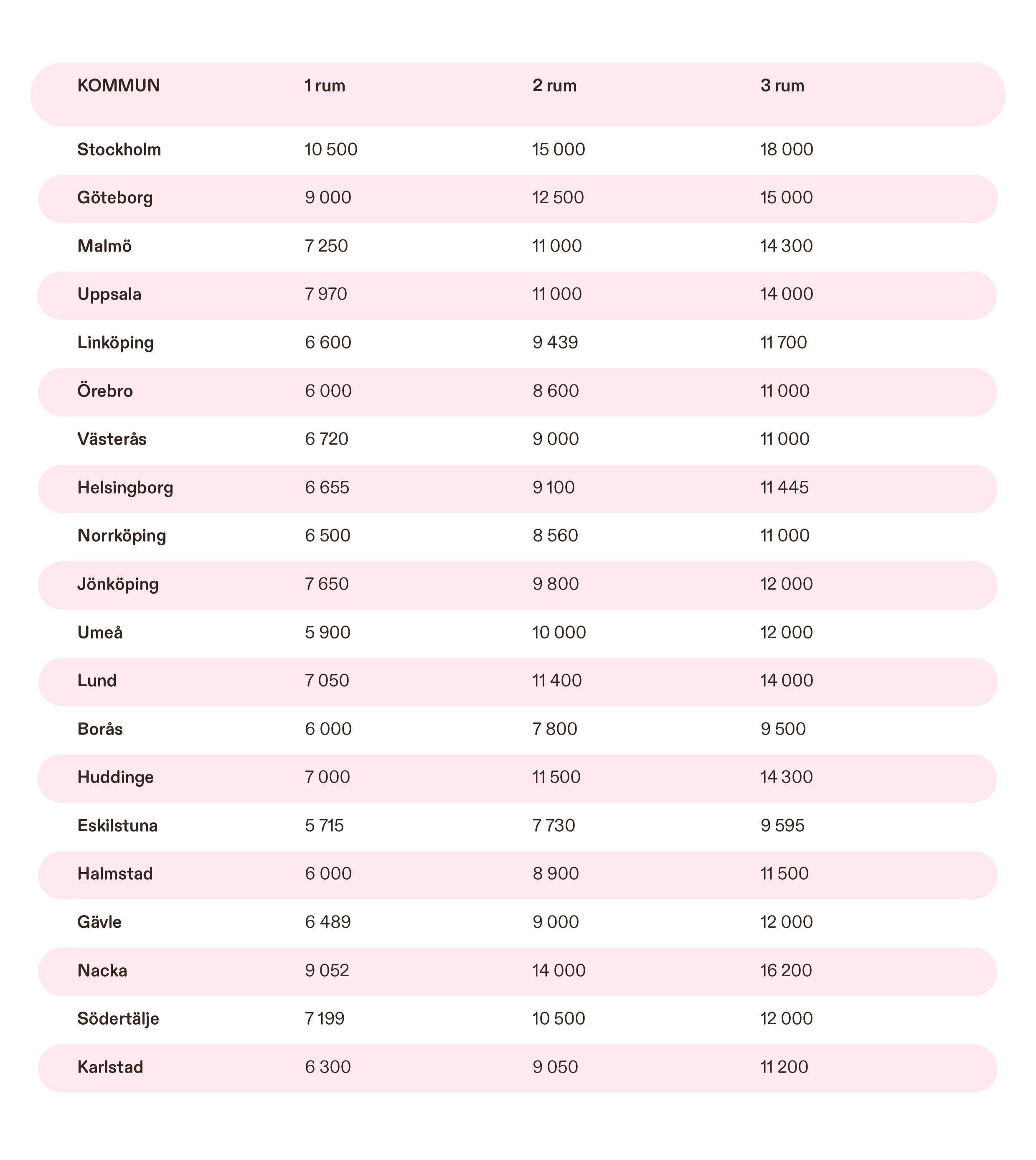 Idag kostar en etta i Stockholm 10 500 kr i månaden och hyreskontraktet gäller i regel i max i ett år.